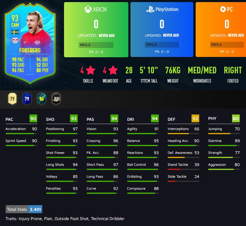 FIFA 22 Emil Forsberg rating stats potential more. Forsberg has got a 4-star skillmoves rating. FIFA 21 Weekly Objectives.